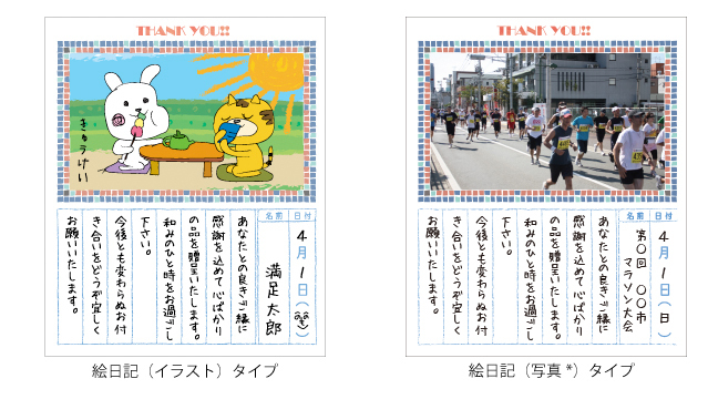 裏面には、報告を兼ねた「あいさつカード」をお入れいたします。