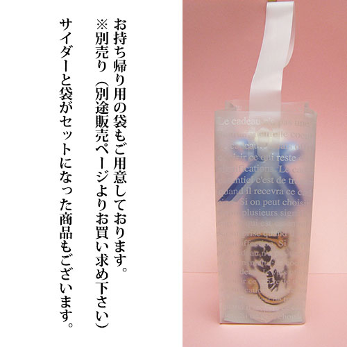 | 説 明 | ブライダルギフトやノベルティにぴったりのサイダーのプチギフト。日本ではじめてサイダーが作られた地「養老」からお届けするの『地サイダー』。パッケージは西野美未の心温まる詩とイラストを添えて大切な方へのギフトにおすすめです。 |