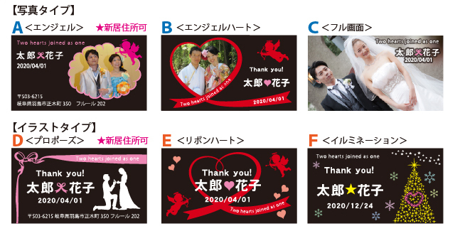 | 注文時に入力が必要な事項 | ※下記の必要事項をご注文画面フォーム、またはお買い物かご【備考欄】に入力してください --------------------- ・お名前 ・記念日(※西暦含む) ・住所(〒から)(※対応デザインのみ) ※定型文で印字されているメッセージは自由に変更可能(20文字程度) |