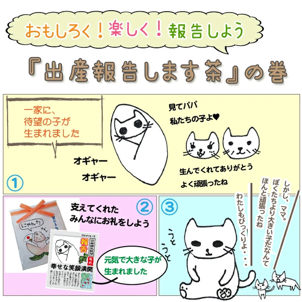 | 注文時に入力が必要な事項 | ※下記の必要事項をご注文画面フォーム、またはお買い物かご【備考欄】に入力してください --------------------- ・お茶(子供)の名前(漢字とふりがな) ・あいさつカード用の氏名 (漢字) ・日付(※西暦含む)(※任意) |