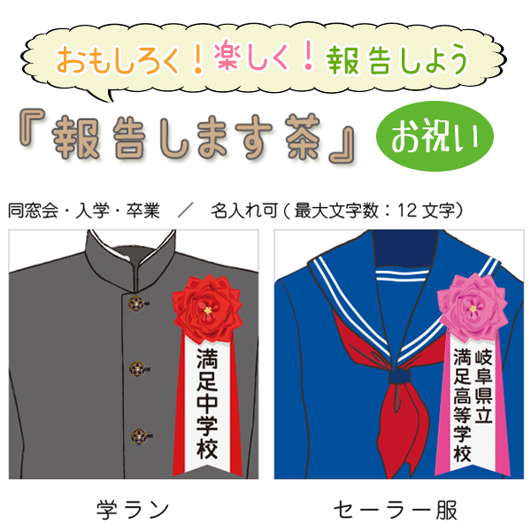 | 内 容 | 報告しまし茶(お祝い 制服)/お茶プチギフト 1個(白川茶(国産煎茶)5g×1袋) |