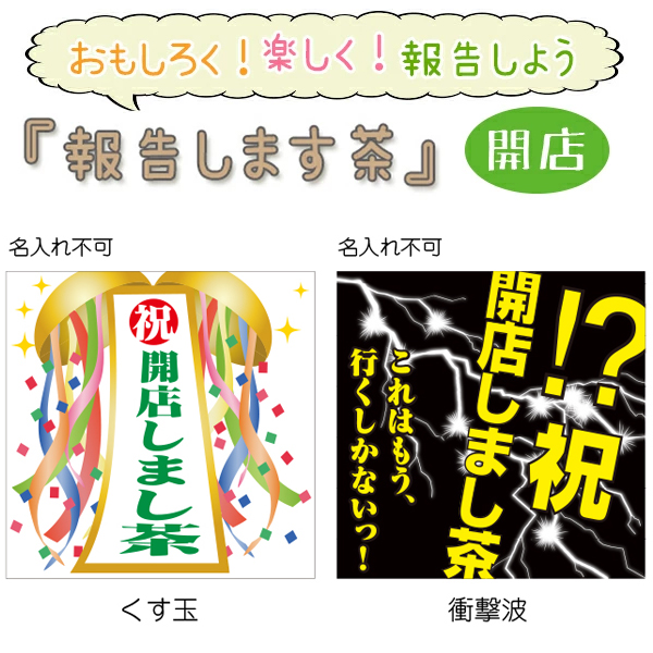| 内 容 | 報告しまし茶(開店)/お茶プチギフト 1個(白川茶(国産煎茶)5g×1袋) |