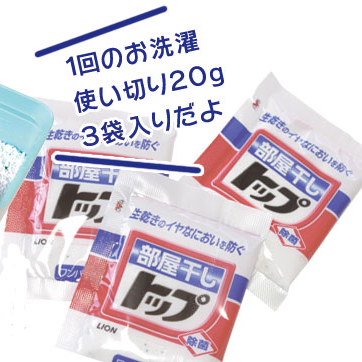 | 内 容 | 部屋干しトップ(洗濯用合成洗剤)20g×3袋 |